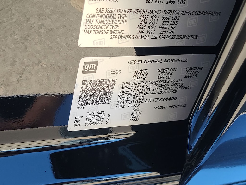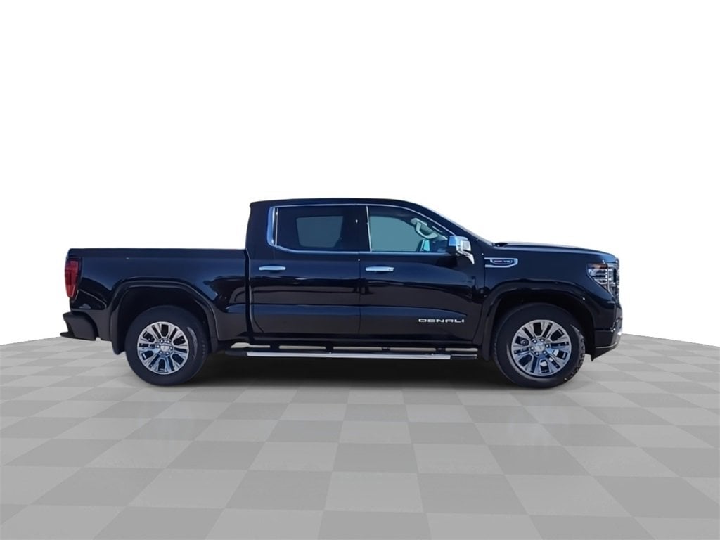 This 2026 GMC Sierra 1500 Denali in Black comes with the following features: EcoTec3 6.2L V8 10-Speed Automatic 4WD 10-Speed Automatic, 4WD, and Black Leather Trailering Package (Hitch Guidance), 10-Speed Automatic, 4WD, Black Leather, 12-Way Power Driver Seat Adjuster w/Lumbar, 12-Way Power Passenger Seat Adjuster w/Lumbar, 120-Volt Bed Mounted Power Outlet, 120-Volt Interior Power Outlet, 170 Amp Alternator, 2 Charge/Data USB Ports Inside Center Console, 2 Type-C Charge-Only Rear USB Ports, 2 USB Ports, 3.23 Rear Axle Ratio, 4-Wheel Disc Brakes, 7 Speakers, ABS brakes, Adaptive suspension, Air Conditioning, Alloy wheels, AM/FM radio: SiriusXM with 360L, Apple CarPlay/Android Auto, Auto High-beam Headlights, Auto-dimming door mirrors, Auto-dimming Rear-View mirror, Auto-Locking Rear Differential, Automatic temperature control, Auxiliary External Transmission Oil Cooler, Bed View Camera, Brake assist, Buckle to Drive, Bumpers: body-color, Chrome Header w/Signature Denali Chrome Grille, Chrome Recovery Hooks, Chrome Wheel To Wheel Assist Steps, Color-Keyed Carpeting Floor Covering, Compass, Deep-Tinted Glass, Delay-off headlights, Denali Premium Suspension w/Adaptive Ride Control, Driver door bin, Driver Memory, Driver vanity mirror, Dual front impact airbags, Dual front side impact airbags, Electric Rear-Window Defogger, Electronic Stability Control, Emergency communication system: OnStar, Enhanced Automatic Emergency Braking, Floor-Mounted Center Console, Following Distance Indicator, Forge Perforated Leather Seat Trim, Forward Collision Alert, Front anti-roll bar, Front Bucket Seats, Front Center Armrest, Front dual zone A/C, Front fog lights, Front Pedestrian Braking, Front Rain-Sensing Wipers, Front reading lights, Front wheel independent suspension, Fully automatic headlights, Garage door transmitter, Genuine wood console insert, Genuine wood dashboard insert, Genuine wood door panel insert, HD Surround Vision, Heated 2nd Row Outboard Seats, Heated door mirrors, Heated Driver & Front Outboard Passenger Seating, Heated front seats, Heated rear seats, Heated steering wheel, Heavy-Duty Air Filter, Hill Descent Control, Hitch View, Illuminated entry, In-Vehicle Trailering System App, Integrated Trailer Brake Controller, IntelliBeam Automatic High Beam On/Off, Keyless Open & Start, Lane Keep Assist w/Lane Departure Warning, LED Cargo Area Lighting, Low tire pressure warning, Memory seat, Navigation System, Occupant sensing airbag, OnStar Services Capable, Outside temperature display, Overhead airbag, Overhead console, Panic alarm, Passenger door bin, Passenger vanity mirror, Perimeter Lighting, Power Door Locks, Power door mirrors, Power driver seat, Power Front Passenger Windows w/Express Up/Down, Power Front Windows w/Driver Express Up/Down, Power passenger seat, Power Rake & Telescoping Steering Column, Power Rear Windows w/Express Down, Power Sliding Rear Window w/Rear Defogger, Power steering, Power windows, Premium Bose 7-Speaker Sound System, Push Button Start, Radio data system, Radio: Premium GMC Infotainment Audio System, Rain sensing wipers, Rear Cross Traffic Braking, Rear Pedestrian Detection, Rear reading lights, Rear seat center armrest, Rear step bumper, Rear Wheelhouse Liners, Rear window defroster, Remote keyless entry, Remote Vehicle Starter System, Safety Alert Seat, Security system, SiriusXM w/360L Trial Subscription, Speed control, Speed-sensing steering, Split folding rear seat, Spray-On Pickup Bedliner w/GMC Logo, Steering Wheel Audio Controls, Steering wheel mounted audio controls, Tachometer, Telescoping steering wheel, Theft Deterrent System (Unauthorized Entry), Tilt steering wheel, Traction control, Trailer Camera Provisions, Trailer Side Blind Zone Alert, Trip computer, Ultrasonic Front & Rear Park Assist, Universal Home Remote, Variably intermittent wipers, Ventilated Driver & Front Passenger Seats, Price includes: $1750 - Purchase Allowance. Exp