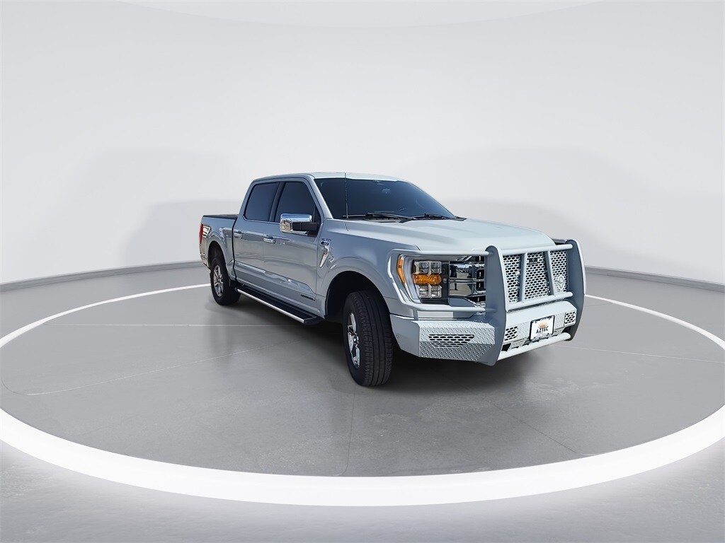 This 2023 Ford F-150 Lariat in Avalanche Gray comes with the following features: 3.5L PowerBoost Full-Hybrid V6 10-Speed Automatic 4WD 3.5L PowerBoost Full-Hybrid V6 and 4WD Bed Utility Package (BoxLink, LED Box Lighting, Power Tailgate, and Tailgate Step w/Tailgate Work Surface), Equipment Group 501A Standard, FX4 Off-Road Package, 3.5L PowerBoost Full-Hybrid V6, 4WD, 4-Wheel Disc Brakes, 8 Speakers, ABS brakes, Adjustable pedals, Air Conditioning, Alloy wheels, AM/FM radio: SiriusXM with 360L, Auto High-beam Headlights, Auto-dimming door mirrors, Auto-dimming Rear-View mirror, Automatic temperature control, Brake assist, Bumpers: chrome, Chrome wheels, Class IV Trailer Hitch Receiver, Compass, Delay-off headlights, Driver door bin, Driver vanity mirror, Dual front impact airbags, Dual front side impact airbags, Electronic Stability Control, Emergency communication system: SYNC 4 911 Assist, Exterior Parking Camera Rear, Front anti-roll bar, Front Bucket Seats, Front Center Armrest, Front dual zone A/C, Front fog lights, Front License Plate Bracket, Front reading lights, Front wheel independent suspension, Fully automatic headlights, Garage door transmitter, Heated door mirrors, Heated front seats, Heated steering wheel, Illuminated entry, Inclination/Intrusion Sensor Removal, Interior Work Surface, Leather-Trimmed Bucket Seats, Low tire pressure warning, Memory seat, Occupant sensing airbag, Outside temperature display, Overhead airbag, Overhead console, Panic alarm, Passenger door bin, Passenger vanity mirror, Pedal memory, Power door mirrors, Power driver seat, Power passenger seat, Power steering, Power windows, Pro Power Onboard - 7.2KW, Radio data system, Radio: B&O Sound System by Bang & Olufsen, Rear reading lights, Rear seat center armrest, Rear step bumper, Rear window defroster, Remote keyless entry, Security system, Speed control, Speed-sensing steering, Split folding rear seat, Steering Wheel Heat Removal (DISC), Steering wheel mounted audio controls, SYNC 4 w/Enhanced Voice Recognition, Tachometer, Telescoping steering wheel, Tilt steering wheel, Tough Bed Spray-In Bedliner, Traction control, Tray Style Floor Liner, Trip computer, Turn signal indicator mirrors, Variably intermittent wipers, Ventilated front seats, Voltmeter, Wheels: 18" Chrome-Like PVD, and Wheels: 20" Chrome-Like PVD.